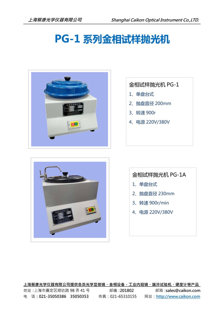 蔡康光学金相试样抛光机PG-1/PG-2系列,台式柜式可选 品牌 | 蔡康 | ||