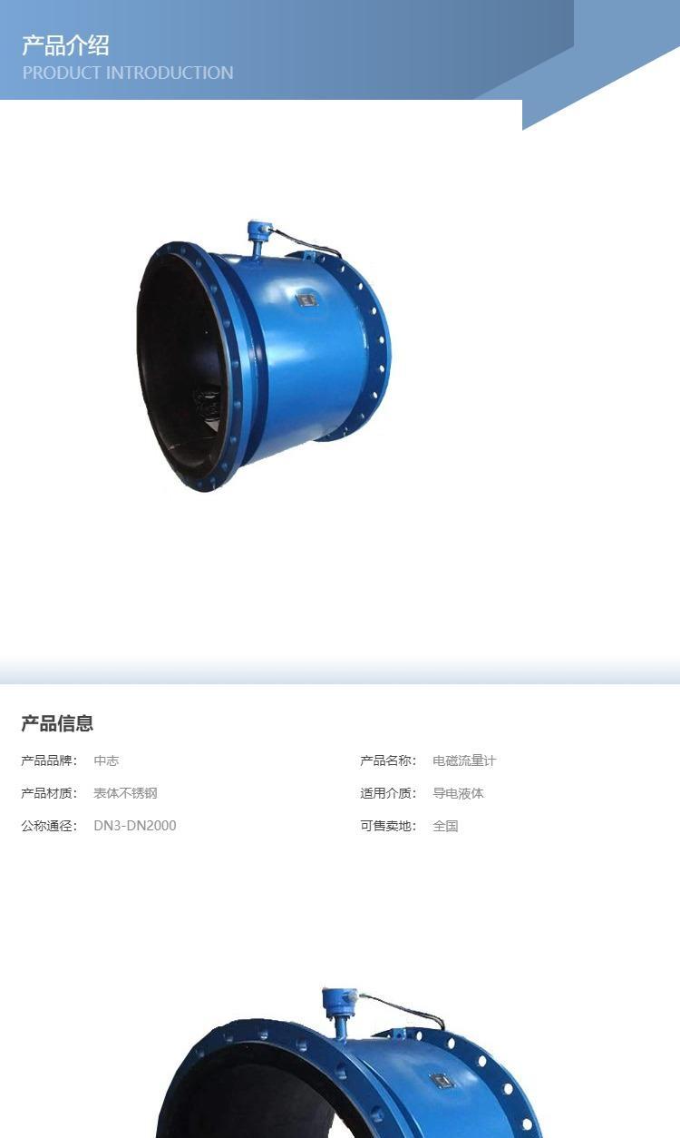 中志一体分体式电磁流量计大口径定制工业泥浆废水液体防腐
