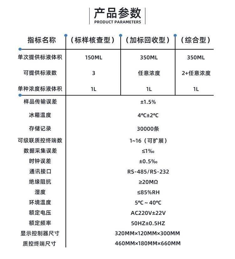 功能特点 | DR-103E (标样核查型) | DR-103E (加标回收型) | DR-103E (综合型) | DR-103E (岸边站型) | |