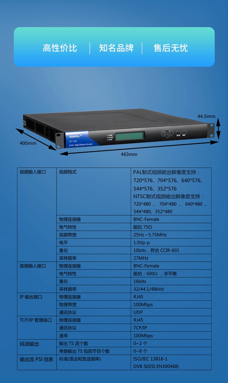 标清编码器/数字电视编码器/广电编码器/酒店电视编码器 GN-1898C 品牌高斯贝尔