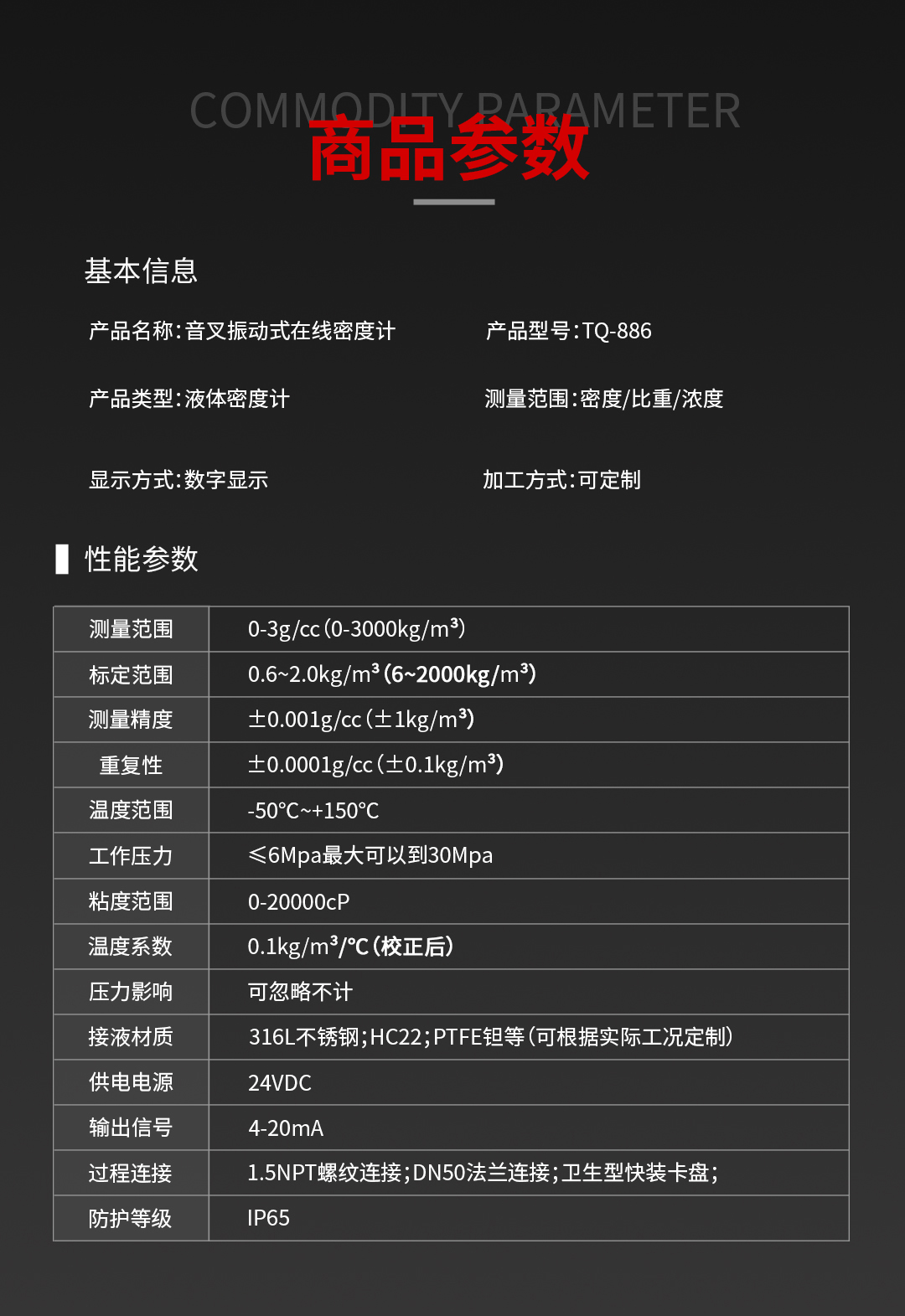 产品参数 | |||