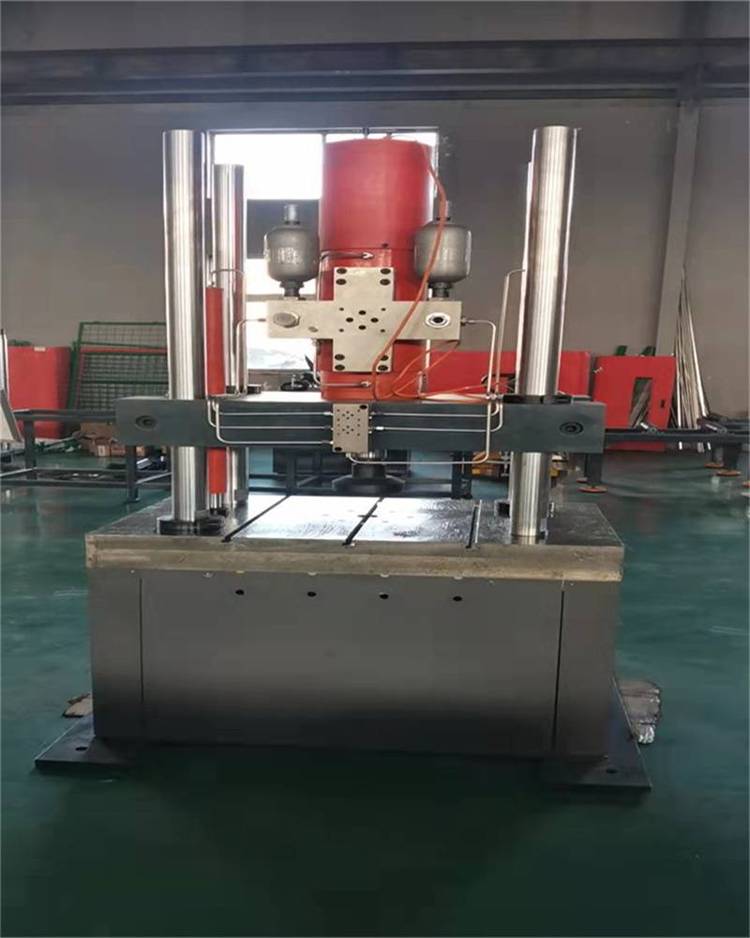 ? ?主机采用四立柱两丝杠油缸下置式主机,拉伸空间位于主机的上方,压缩试验空间位于主机下横梁和工作台之间。主机上横梁、工作台通过立柱紧固连接形成一个刚性框架—上框架。中横梁、底座通过两丝杠也形成一刚性矩形框架—下框架。通过技术装配手段,使得上下刚性框架半重叠。即构成下框架的中横梁位于上框架之间;同时,构成上框架的工作台也位于上框架之间,下框架的底座上安装有油缸,活塞则和上框架的工作台相连。设备运转时,传动液压油进入油缸底部,使活塞带动上框架上行,致使上横梁与中横梁之间的空间沿活塞运动方向增大,从而形成拉伸空间。中横梁与工作台之间的空间沿活塞运动方向减小,从而形成压缩、弯曲、剪切试验空间。