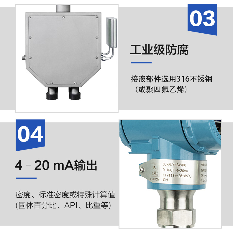 用途 | 对各种液体或液态混合物进行在线检测密度测量 | ||