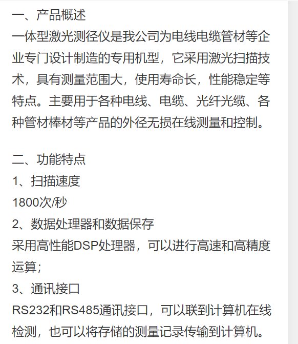 激光测量测径仪光学测量双向测量在线测量快速读数