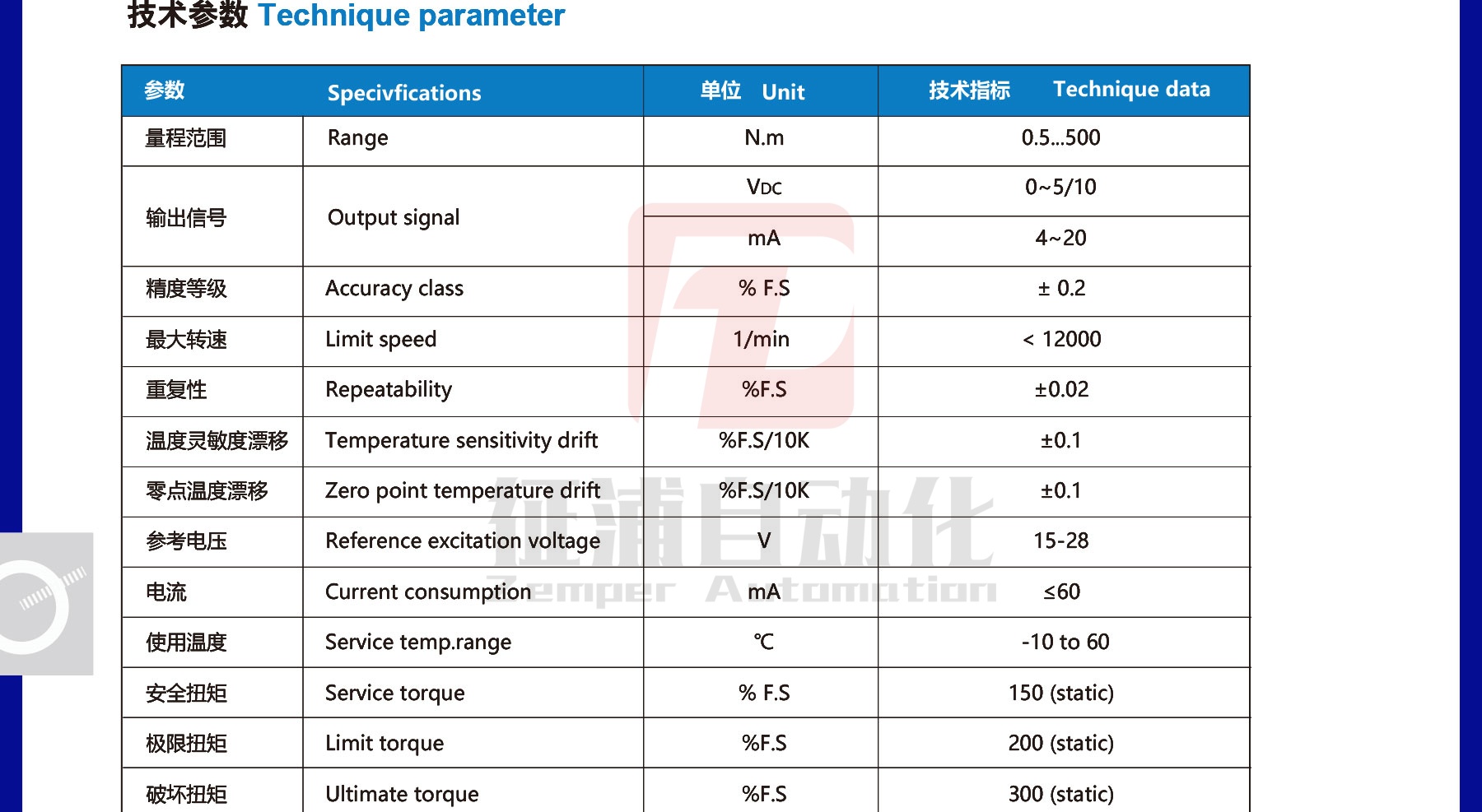 类型 | 动态扭矩传感器 | ||
