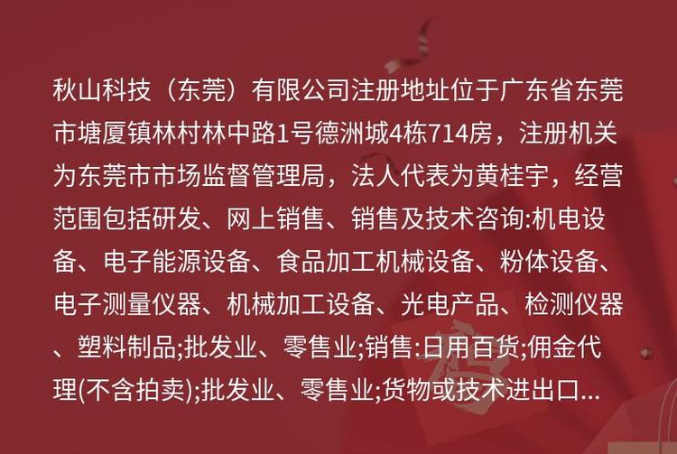 商铺名称:秋山科技(东莞)有限公司
