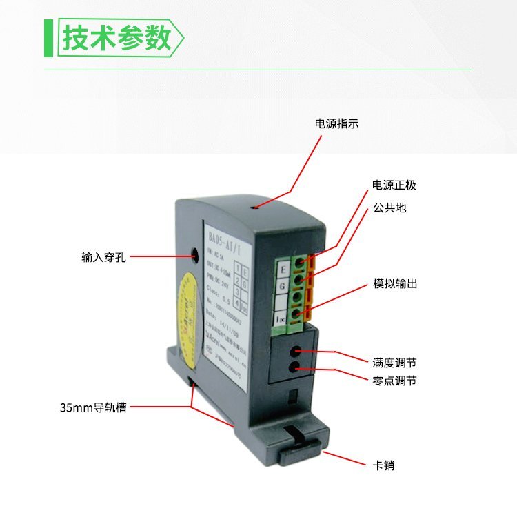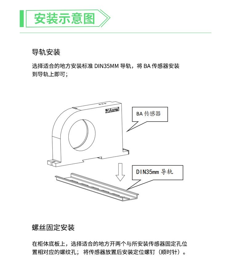 安科瑞BA20-AI/I 交流电流传感器 电机水泵电流采集 输出4-20mA模拟信号PLC 品牌 | 安科瑞电气 | ||