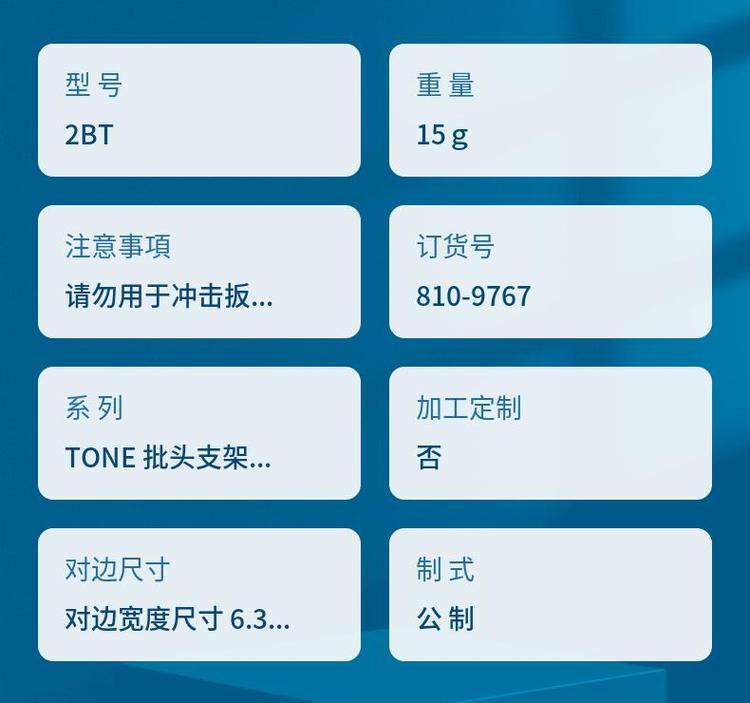 日本TONE前田2BT批头套筒 公制1/4 电动扳手用 小飞 原装进口 重量 | 15g | ||