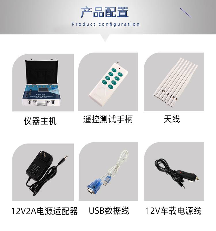 配件配置 | 主机、电源适配器、车载电源线、天线、软件升级线、遥控测试手柄 | ||