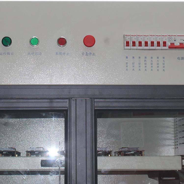 固态硬盘SSD老化柜规格书((仅供参考,按按户要求定制))一、固态硬盘SSD老化柜结构:1、柜体尺寸:L1900mm*W850mm*H1980mm2、柜体材质:冷轧板,方通成型模具冲压激光切割制作3、内部结构:产品区7层,205mm/层,净空高为150mm/层,底层离地高300mm/层,层离地高度1500mm;层板为抽屉式结构,可拉出安装产品,配送一脚凳。4、结构形式:产品区与供电电源隔离5、产品区门:折叠门更便于层板抽拉二、固态硬盘SSD老化柜温控系统:1、控制范围:常温-70℃2、控制精度:±5℃3、加热方式:电阻式金属发热装置4、控制方式:产品区设置多个高精度温度采集装置,每层有独立出风口及进风口保证温度更均匀。当产品区温度低于设定值时,加热装置工作;高于设定值时,风阀打开将鲜风灌入产品区冷却。5、保护功能:EGO防干烧功能三、固态硬盘SSD老化柜供电板块1、模块型号:WDF-4202、通道数量:10个通道3、板卡输入:12Vdc4、板卡输出:5Vdc 3A/位5、板卡优势:由高压转为低压,电压精准,直接5V开关电源供电,电压较低,会有压降,影响老化效果。四、固态硬盘SSD老化柜电控系统1、工作电压:三相五线10平方380V2、供电电源:12V 400W开关电源,5V*3A*10PCS=150W/0.9(板卡效率)=167W,即一个电源供应2个板卡。3、老化数量:按客户要求定制4、线材选用:国标105℃高温线材,加热装置采用尼龙高温线材5、电器选用:德力西工业级电器6、控制方式:触摸屏控制及设定,可储蓄机型调取使用,每层有个独立开关7、设备接地:接地保护,漏电保护固态硬盘SSD老化柜图片: