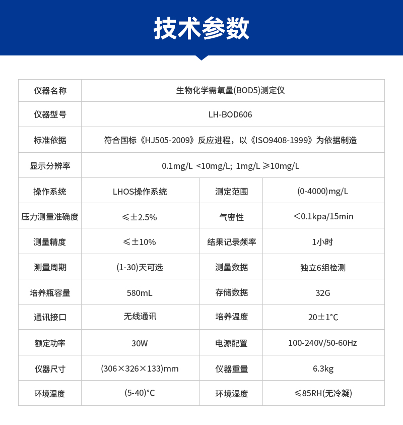 标准依据 | 符合国标《HJ505-2009》反应进程,以《ISO 9408-1999》为依据制造 | ||