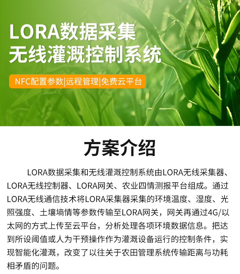 系统构成 | LORA无线采集器、LORA无线灌溉控制器、LORA网关以及农业四情测报平台 | ||