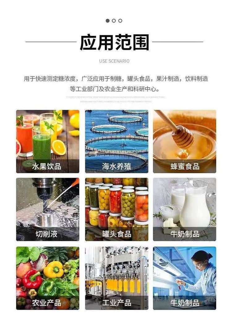 用途范围 | 水果饮料豆浆果园实验室等甜度测量 | ||