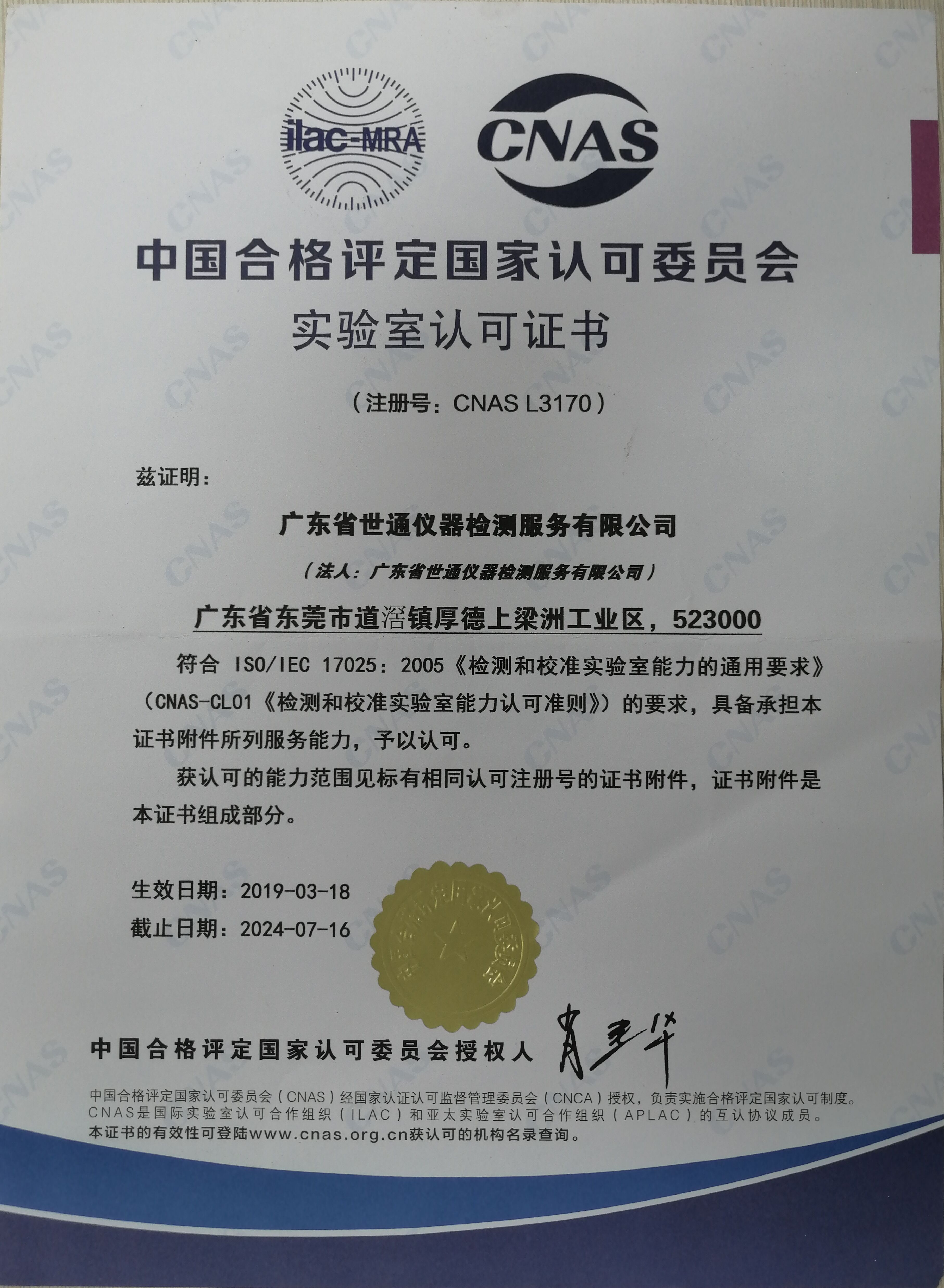 认可资质 | 十七年CNAS认证实验室 | ||