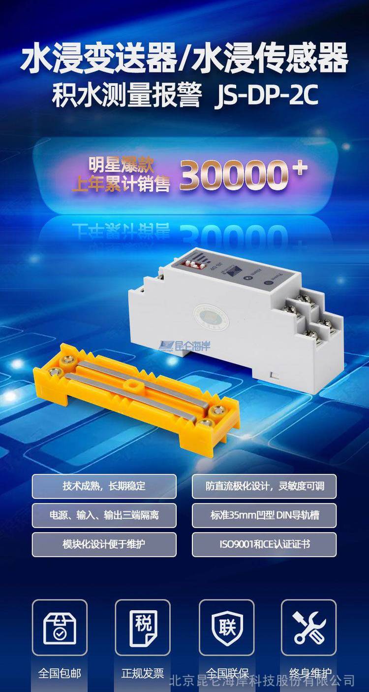 一.用途: ??北京昆仑海岸导轨式安装普通探头水浸变送器JS-DP-2C