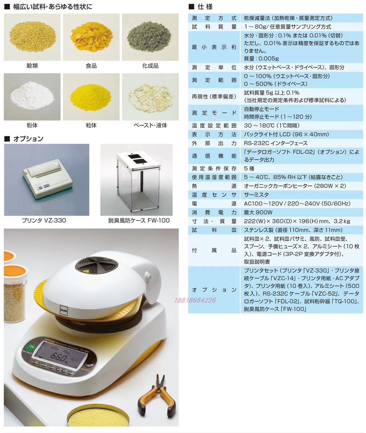 日本kett凯特红外水分检测仪烘干法水分测定仪FD-720