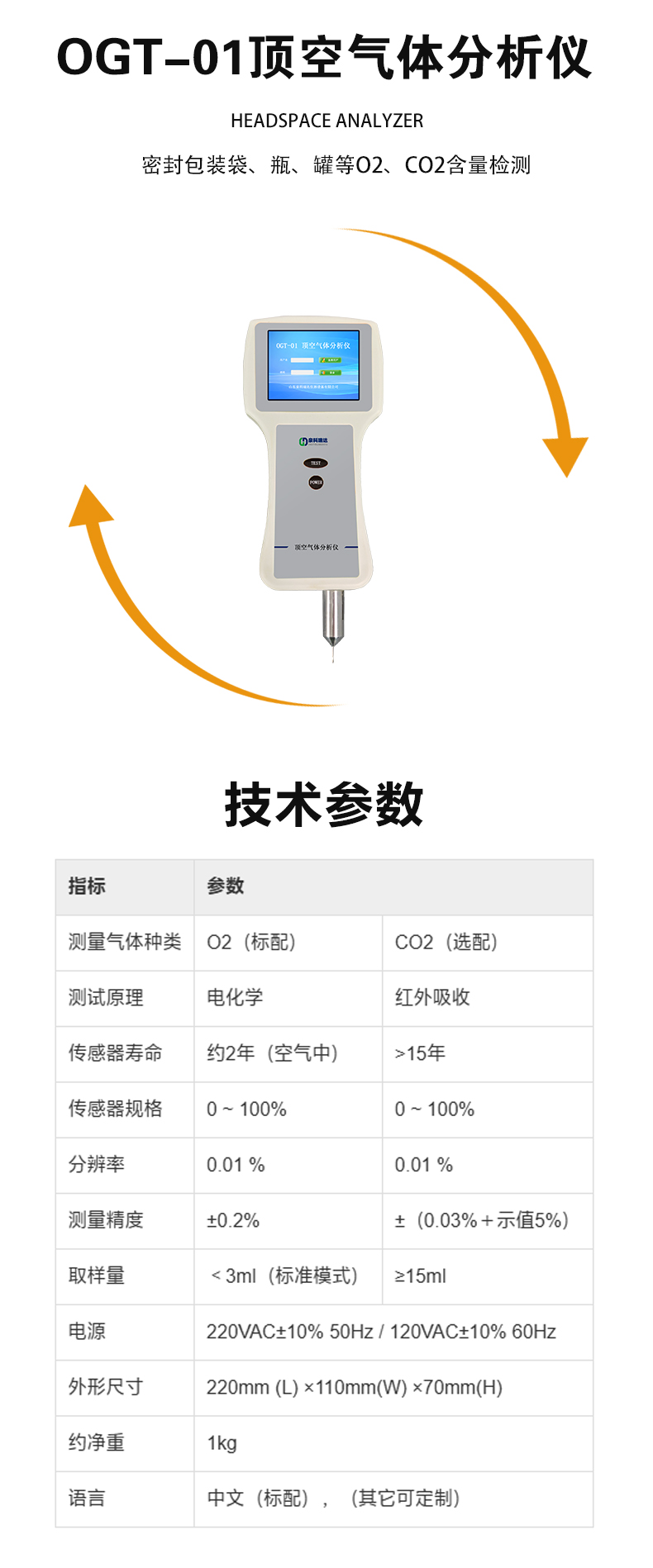 胶囊铝塑泡罩包装顶空分析仪手持式包装残氧量检测仪顶空残氧仪