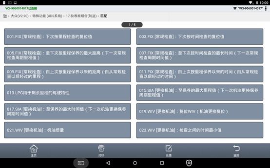 在“汽车保养”中列举了常见的保养功能,进入车型后,可对车辆进行快速保养复位。