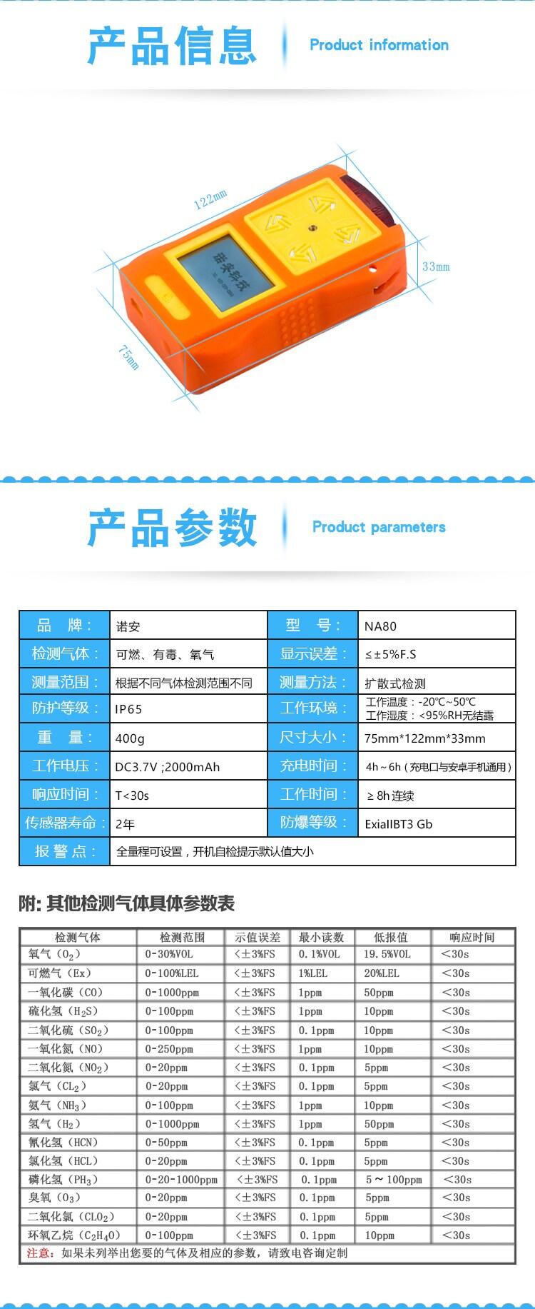 诺安科技NA80便携式可燃气体检测仪 单一气体检测仪采用自然扩散方式检测气体,敏感元件采用优质气体传感器,具有极好的灵敏度和出色的重复性;仪器采用嵌入式微机控制,操作简单,功能齐全,可靠性高,具有多种自适应能力;使用点阵液晶显示器,直观清晰;小巧美观的便携设计不仅使您爱不释手更便于您移动使用。