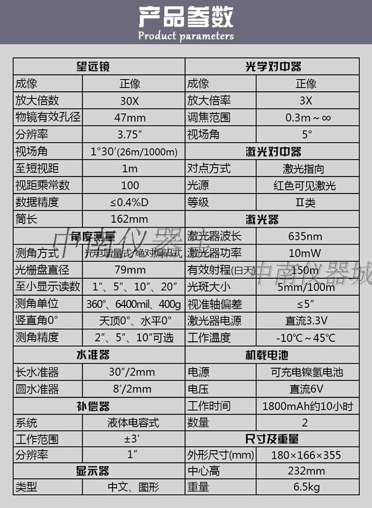 大地DE2A系列电子经纬仪上下激光高精度测量仪器