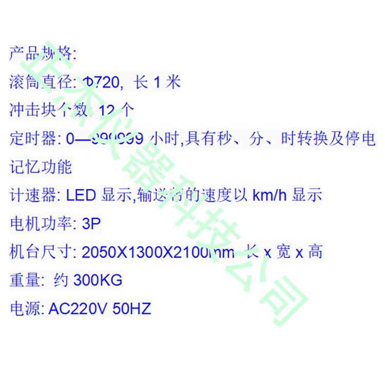 本机依据CNS6263-11设计制造,其目的是模拟滑板车,溜冰鞋路况运动时底轮及车体之动态耐用之程度(亦可用来作其它类产品之试验),为改善动态耐用性之质量提供可靠之依据。本机是通过马达带动链轮运动,从而带动滚筒转动,并通过调节马达转速改变滚筒之转速来达到测试目的。