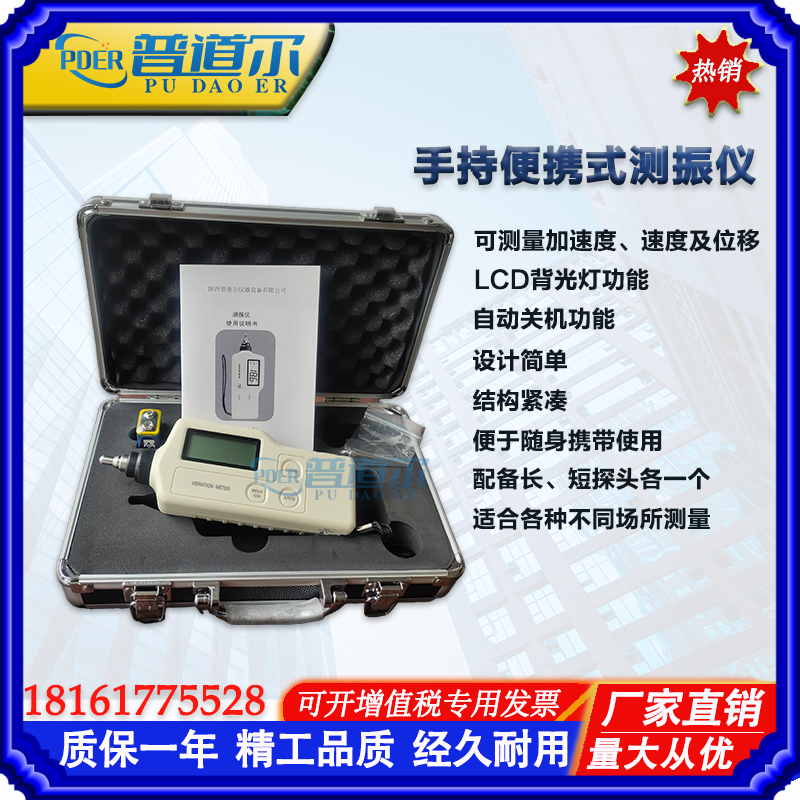 陕西普道尔仪器设备有限公司生产供应工业级手持便携数字式测振仪、测振笔、振动计、机械设备振动故障检测仪、适用于机械设备常规振动的侧量,特别是旋转和往复机械中的振动测量,可测量振动位移,速度和加速度,被广泛用于机械制造、电力冶金、一般航天航空等邻域。对分厂点检员,配有多功能便携式振动计,测量参数为加速度、速度、位移等,方便检验员携带,主要用于随机检测设备运行状态。