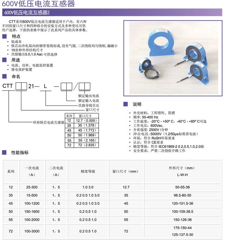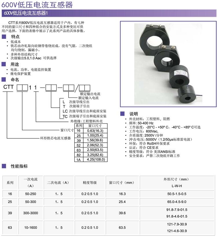 600V低压电流互感器低压三相电流互感器	CTT1611
