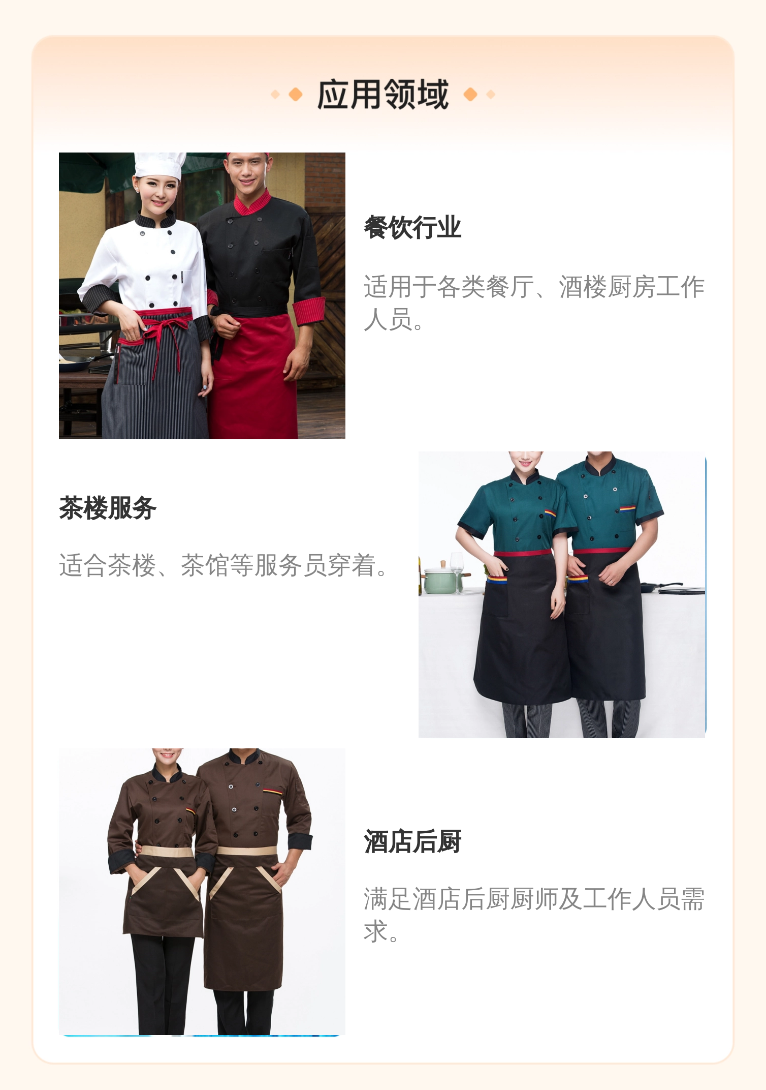 适用场合 | 厨师服 | ||