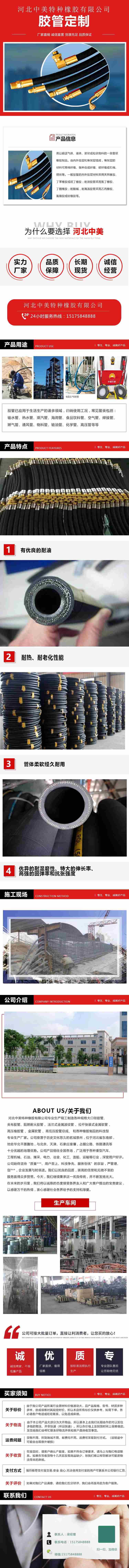 分类:高压钢丝编织胶管、高压钢丝缠绕胶管、大口径高压胶管、钢丝(纤维)增强尼龙弹性体树脂管、钢丝增强软管、超高压软管、耐高温软管、聚氨酯胶管。