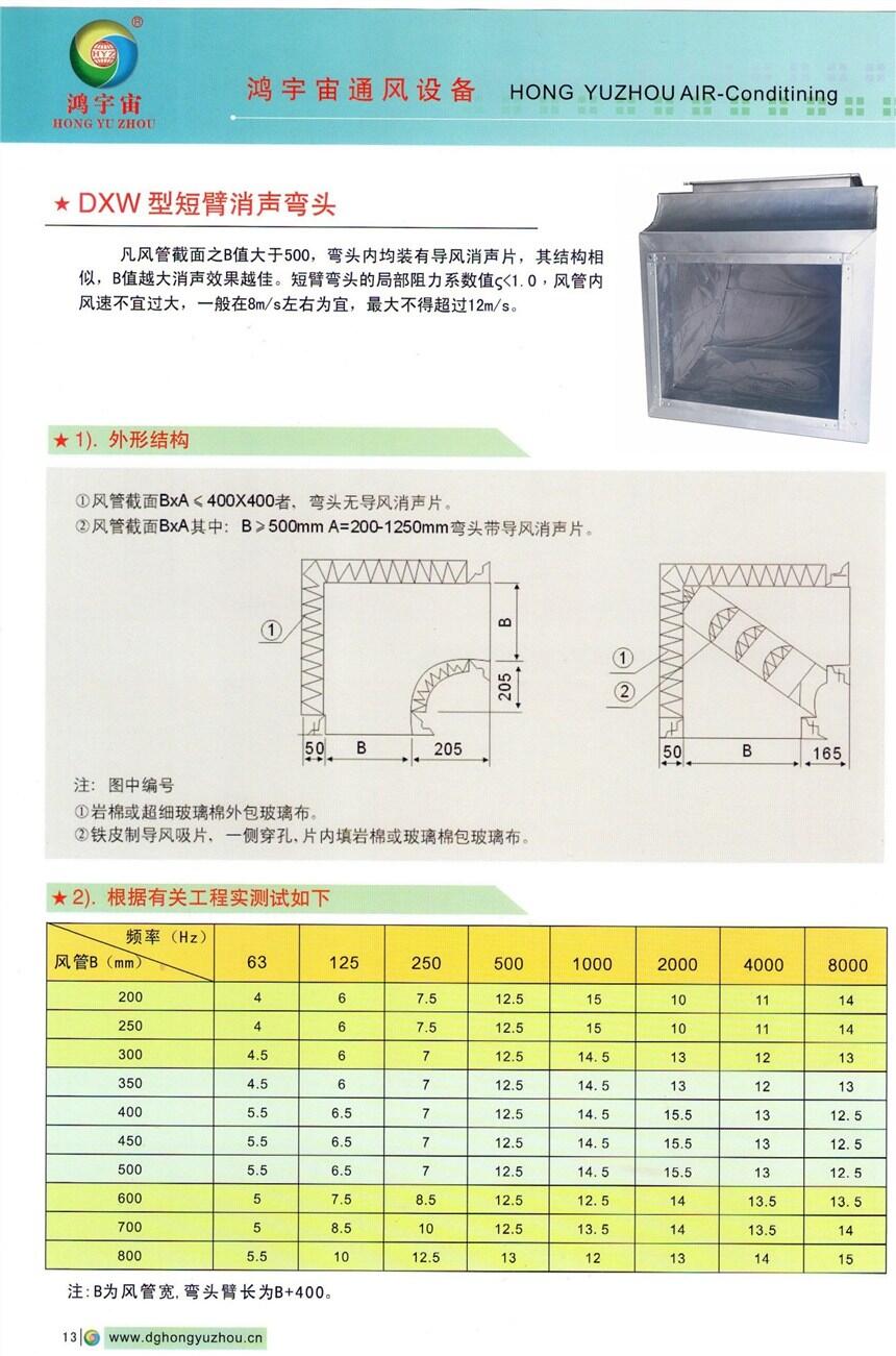 ? ? 凡风管截面之B值大于500,弯头内均装有导风消声片,其结构相似,B值越大消声效果越佳。短臂弯头的局部阻力系数值?<1.0,风管内风速不宜过大,一般在8m/s左右为宜,不得超过12m/s。