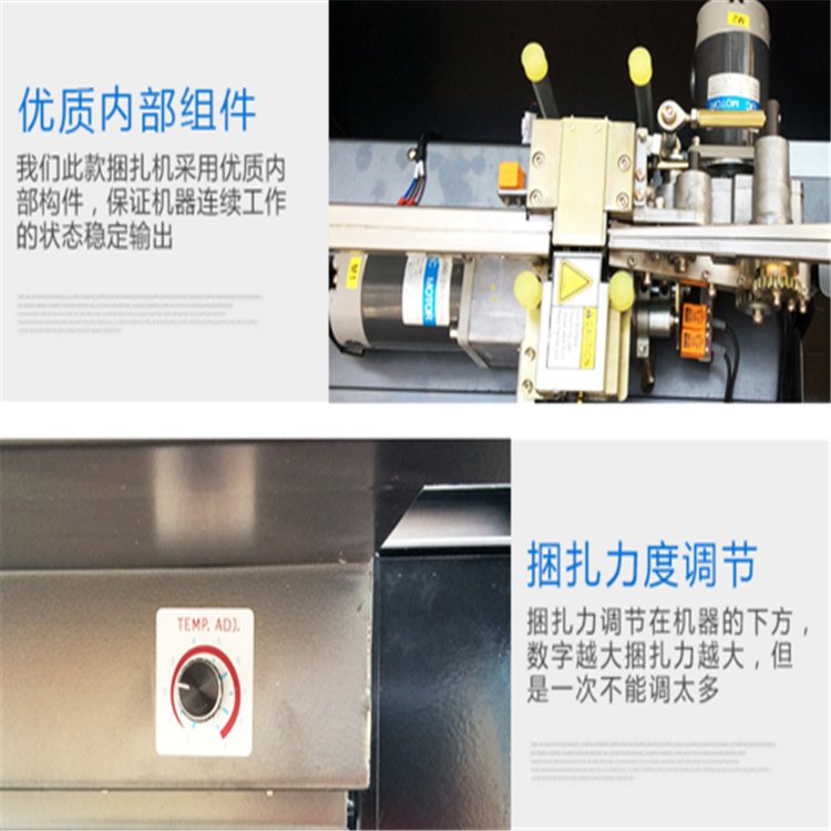 全自动图书打包机用的也是220v电压,用的是三个电机控制,一个电机送带,一个电机切带,一个电机控制带盘的送带余量,当感应余量打包带不够的时候,控制带盘的电机就开始转动,送出要储存的打包带.全自动图书打包机控制电路也是一块独立的电路板,控制着打包带的捆紧,送带。控制*非常高,整个机器用的是铝合金的龙门框架,标准框架的尺寸是800*600mm,特殊尺寸可以定制。当把图书包装好后放上全自动图书打包机的感应区域后,自动开始打包捆紧,自动切断。智能化非常高,速度快。一台全自动图书打包机可以顶得上2-3台半自动的图书打包机打包量.