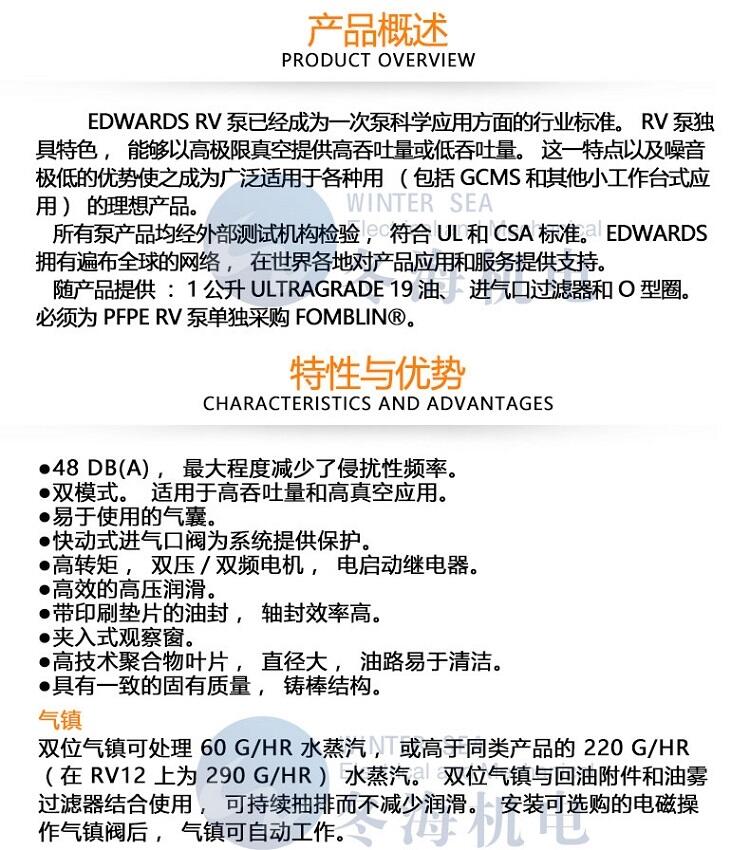 Edwards爱德华油旋片机械真空泵RV3/RV5/RV8/RV12工业用抽气高
