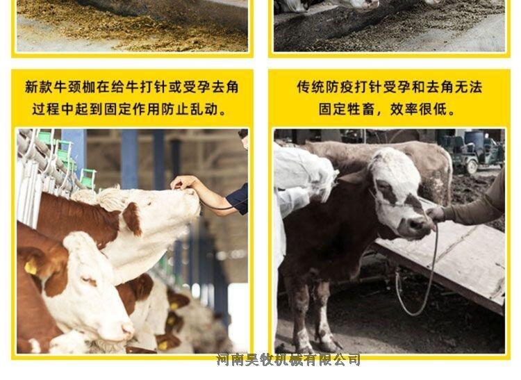便于奶牛保定、可在奶牛低头采食时灵活开合,便于兽医或配种员对奶牛进行常规体检、免疫、人工受精、去角、产犊等活动,降低劳动强度,提高工作效率。