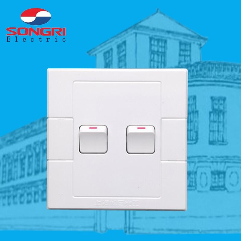 上海松日工程款小按钮建筑楼盘墙壁开关插座三开单双控