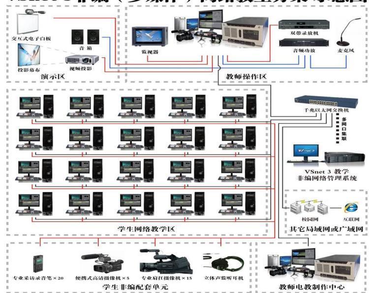 /千兆以太网,配备高性能教师专用非编系统、无卡学生非编系统、智能媒资存储管理系统和教学管理软件,可实现非编制作全流程的教学。