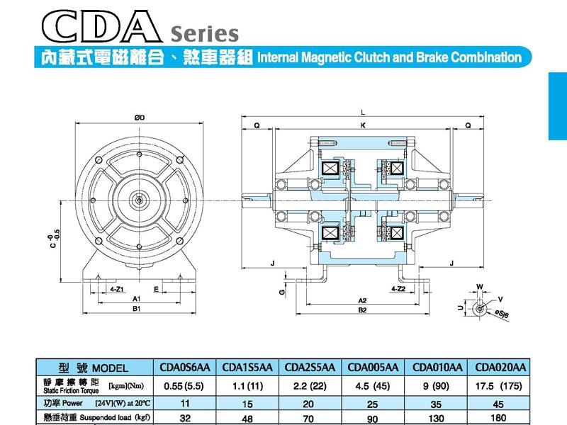 cda型离合器剎车组合体為-cdf离合器与-cdg剎车之组合。