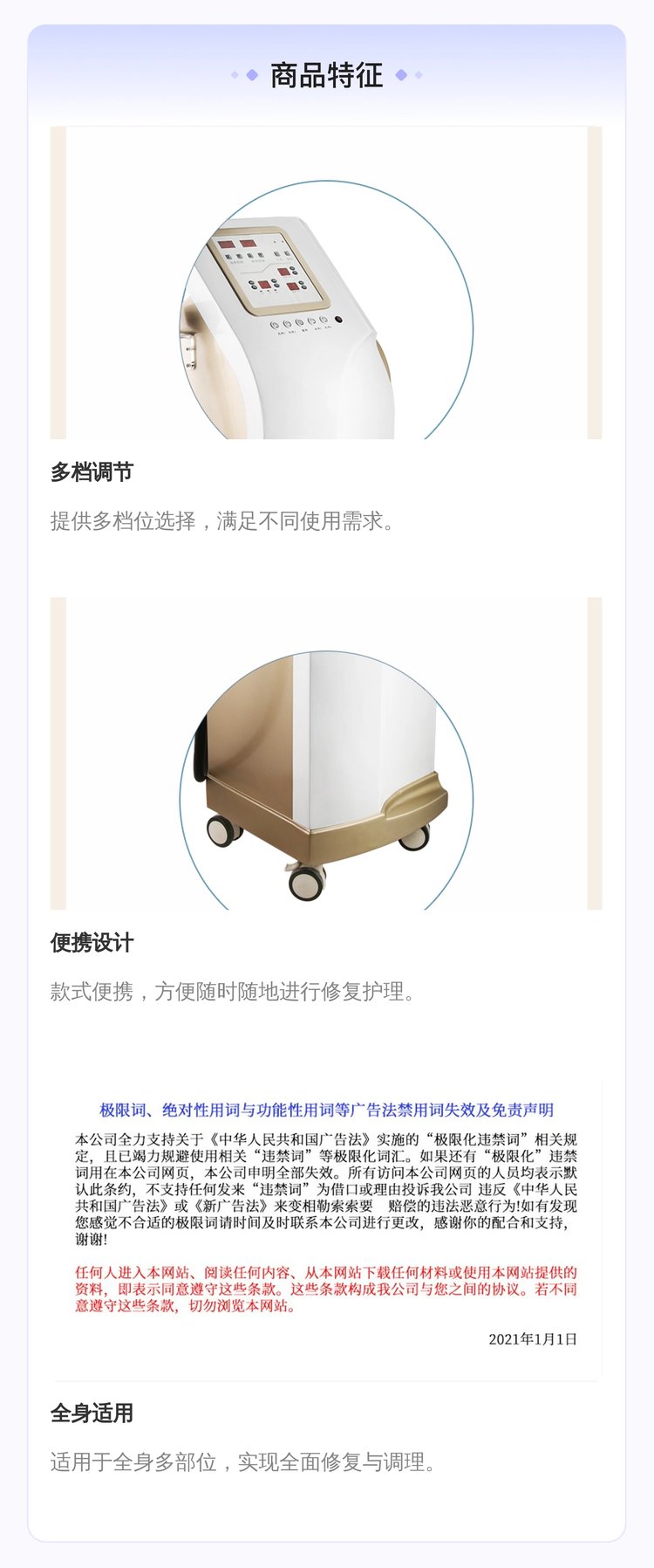 适用发质 | 不适用(因为产品为产后修复仪,与发质无关) | ||