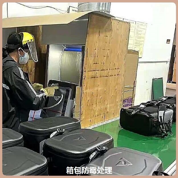 考虑到翻箱处理的特殊性,霉菌的可繁殖、传染性,在箱包翻箱处理时,应尽量将之前用过的包装纸、塞纸进行更新,待更换过包装后,在包装内侧喷或刷上适量的 iHeir-Spray1 防霉抗菌剂进行防霉除霉处理,然后自然风干(通风良好处数分钟即可)或烘干,包装出货。