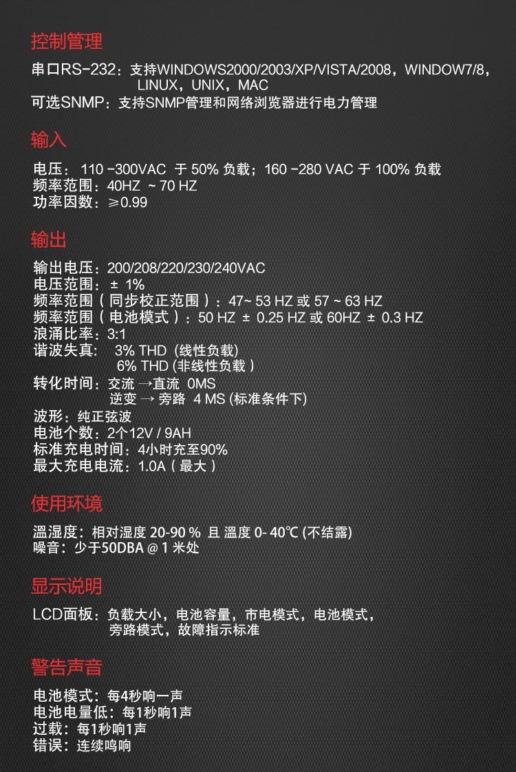 产品参数(H1K-1000VA/800W)