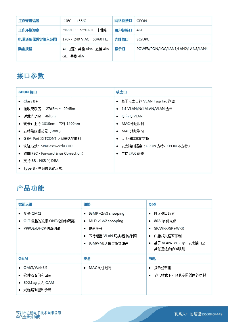 • 规格:华为EchoLife EG8040C