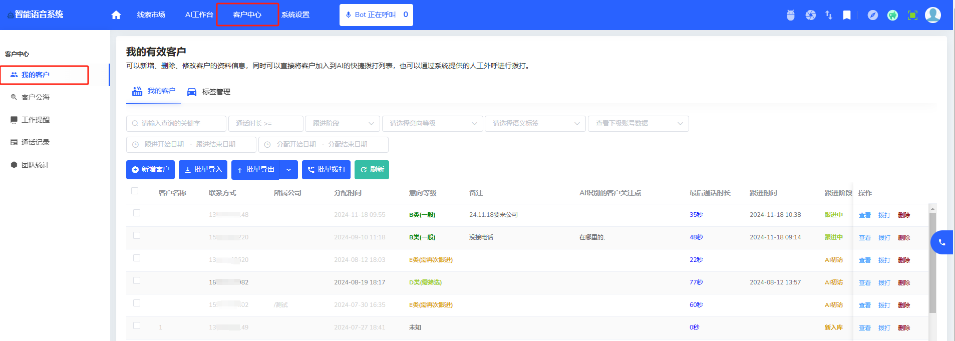 ai语音机器人通过预拨号的功能,可以过滤空号、无效号码。这样,有效的号码就可以节省销售时间和提高销售效率。