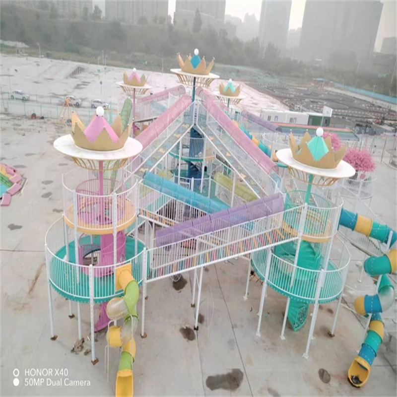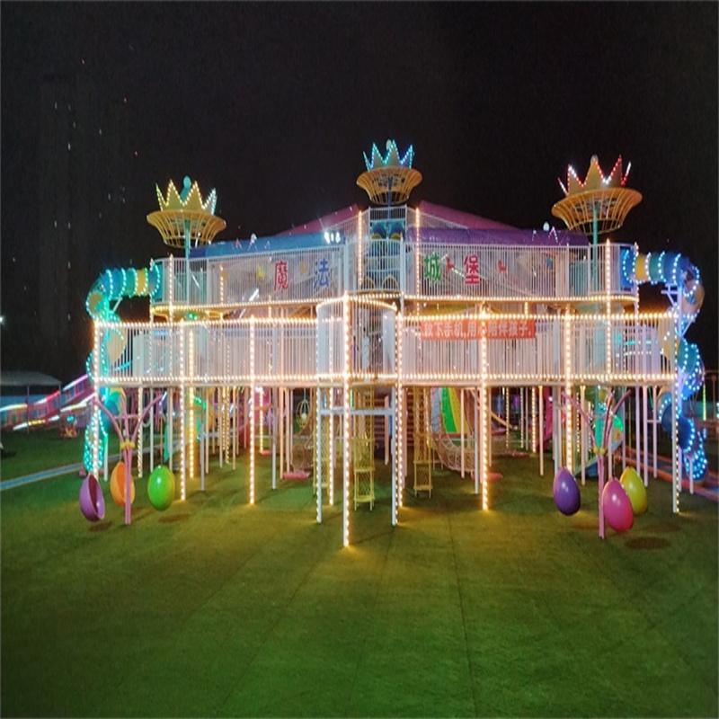 魔法城堡是一种娱乐性非常强的无动力游乐设施,它集合了滑梯、攀爬、障碍穿越、蹦床、观景等多种功能,为孩子们打造了一个综合性的玩乐场所。让孩子们在玩耍中成长,在挑战中收获勇气,在欢乐中度过美好的童年时光。