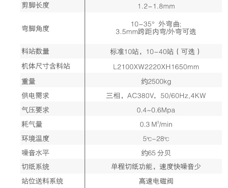弯脚角度 | 10-35°外弯曲 | 3.5mm跨距内弯/外弯可选 | |